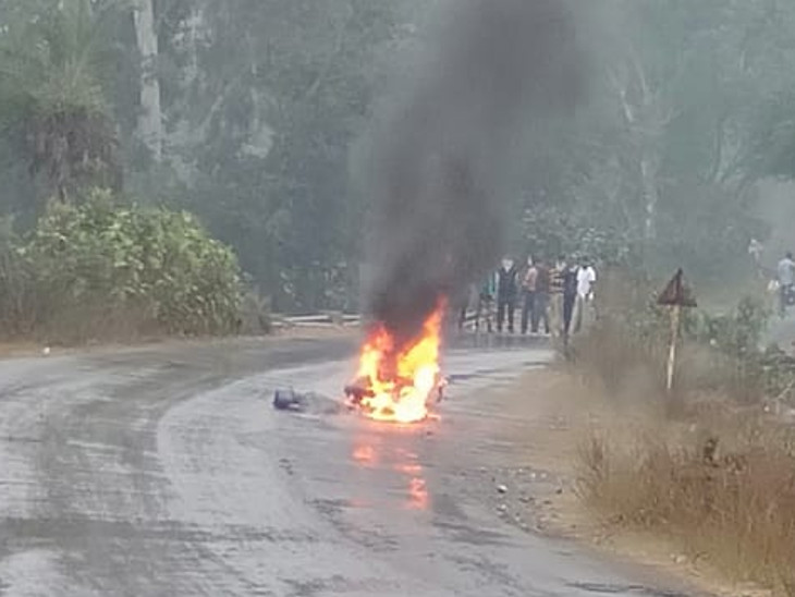 રાજસ્થાનના બાંસવાડા જિલ્લામાં નોગામામાં ગુરુવારે સવારે એક કરુણ ઘટના બની છે. સ્કૂટી પર સ્કૂલે જઈ રહેલી એક શિક્ષિકા પર 11KV વીજલાઈનનો તાર પડ્યો હતો. આ સાથે જ સ્કૂટી સળગીને રાખ થઈ ગઈ અને મહિલાનું પણ ઘટનાસ્થળે મોત થયું છે.