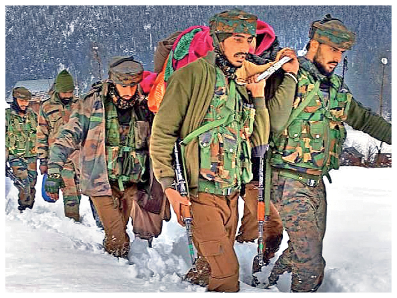 કાશ્મીર ઘાટીમાં છેલ્લા થોડા દિવસોથી સતત હિમવર્ષા થઈ રહી છે. આ દરમિયાન સેનાના જવાનો આમ લોકોને મદદ કરી રહ્યાં છે. કુપવાડના કરાલપુરમાં સેનાના જવાનોએ એક ગર્ભવતી મહિલાને તેના ઘરેથી 2 કિમી દૂર એમ્બ્યુલન્સ સુધી પહોંચાડી હતી. તેના માટે જવાનોએ ઘુટણ સુધીના બરફમાંથી પસાર થવું પડ્યું.