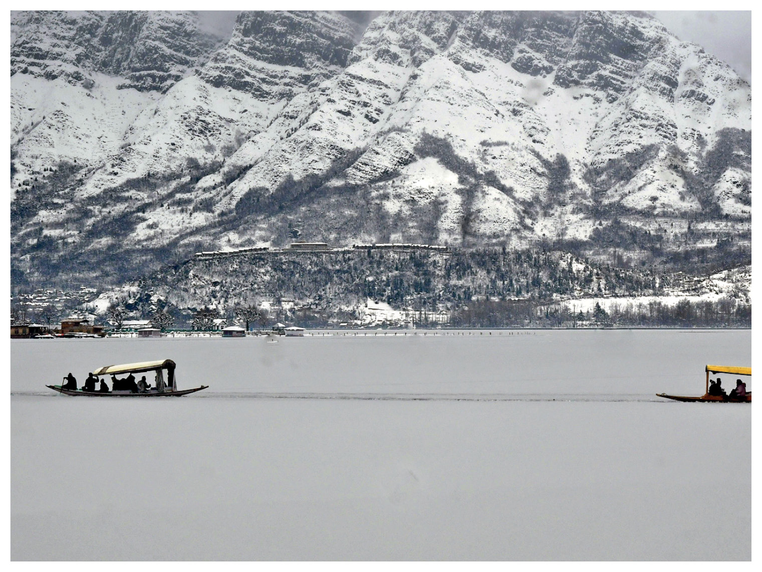શ્રીનગરમાં સરોવરમાં બરફ જામી ગયો છે